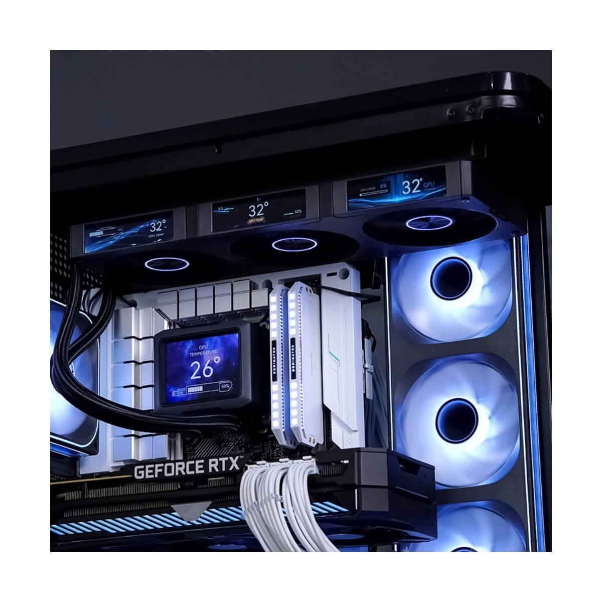 Mỗi quạt được tích hợp LED ARGB hỗ trợ đồng bộ hiệu ứng ánh sáng thông qua kết nối 5V 3-pin. Kết hợp với phần mềm điều khiển từ mainboard, bạn có thể cá nhân hóa màu sắc, hiệu ứng chuyển động ánh sáng theo ý thích.