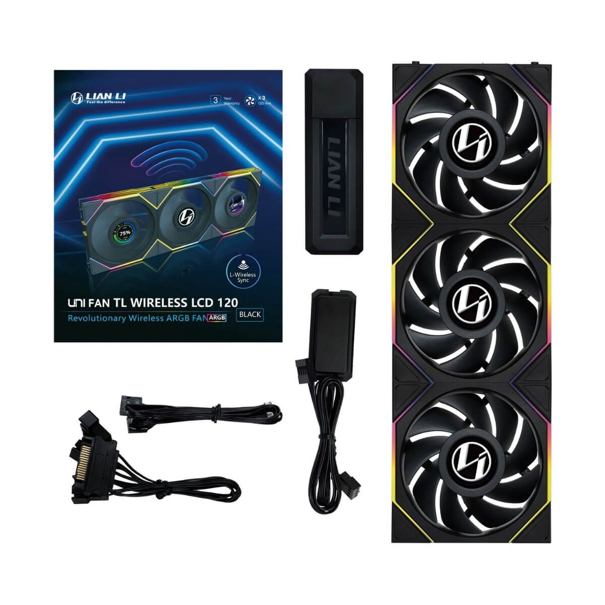 Bộ ba Fan Case Lian Li UNI FAN TL WIRELESS LCD 120 Black 12TLLCD1W3B ( Gió Thuận )