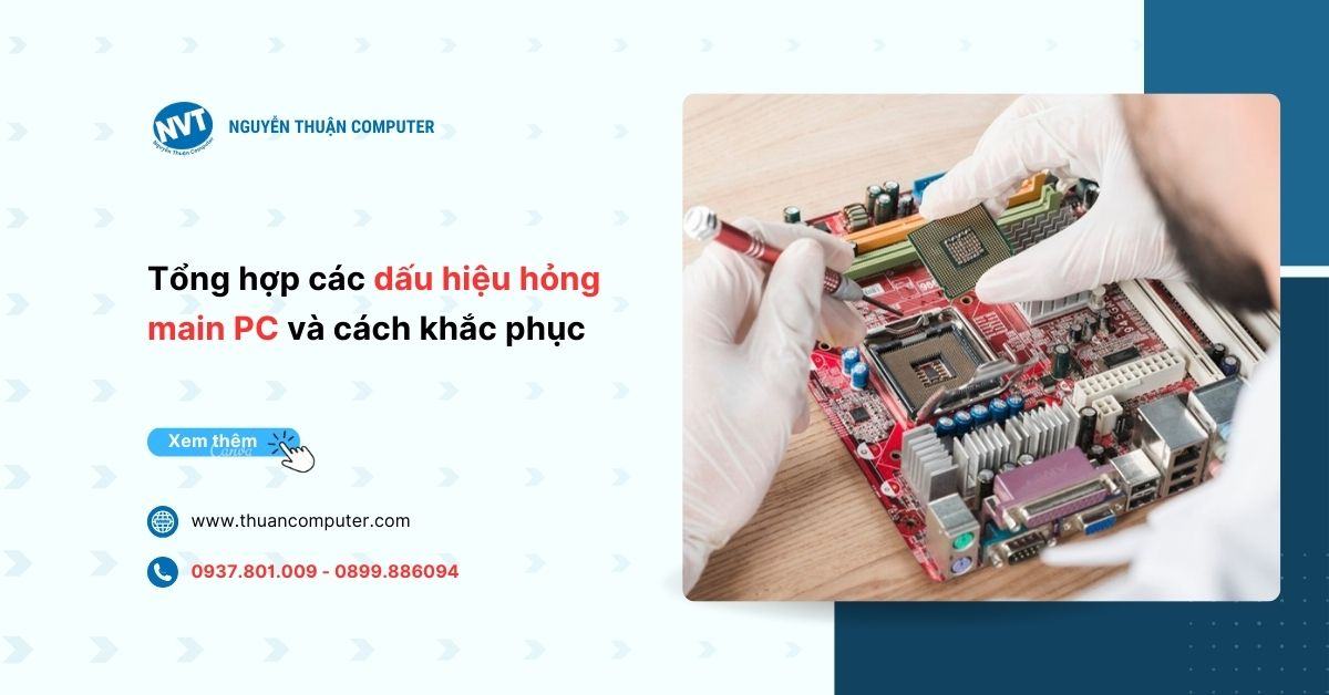 Dấu hiệu hỏng main PC là cụm từ được nhiều người tìm kiếm khi máy tính bắt đầu xuất hiện những biểu hiện bất thường nhưng chưa rõ nguyên nhân. Dưới đây, Nguyễn Thuận Computer sẽ giúp bạn nhận biết sớm các dấu hiệu và hướng xử lý phù hợp, để bạn luôn chủ động trước mọi “triệu chứng lạ” của máy tính.