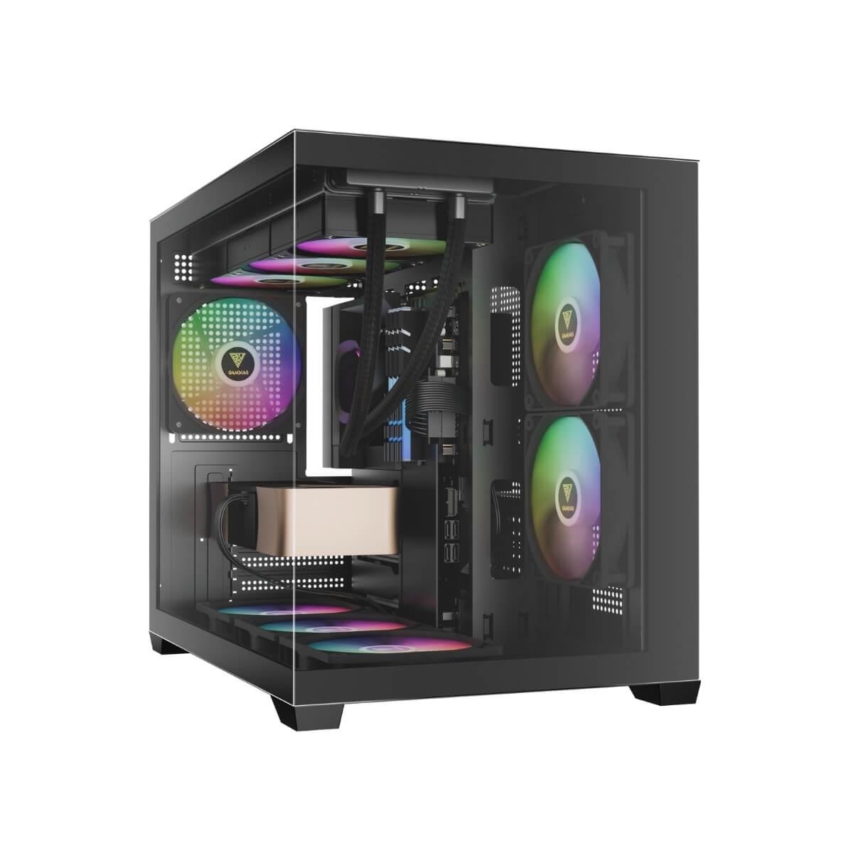 Gamdias AURA GC10M V2 ARGB Black là mẫu case Mid-Tower nhỏ gọn nhưng sở hữu không gian lắp đặt rộng rãi và thiết kế hiện đại, phù hợp cho các bộ máy hiệu suất cao theo phong cách gaming. Với khả năng hỗ trợ tối đa đến 9 fan, VGA dài 400mm cùng mặt kính hông trong suốt, sản phẩm không chỉ đảm bảo khả năng làm mát mà còn mang đến tính thẩm mỹ nổi bật cho toàn hệ thống.