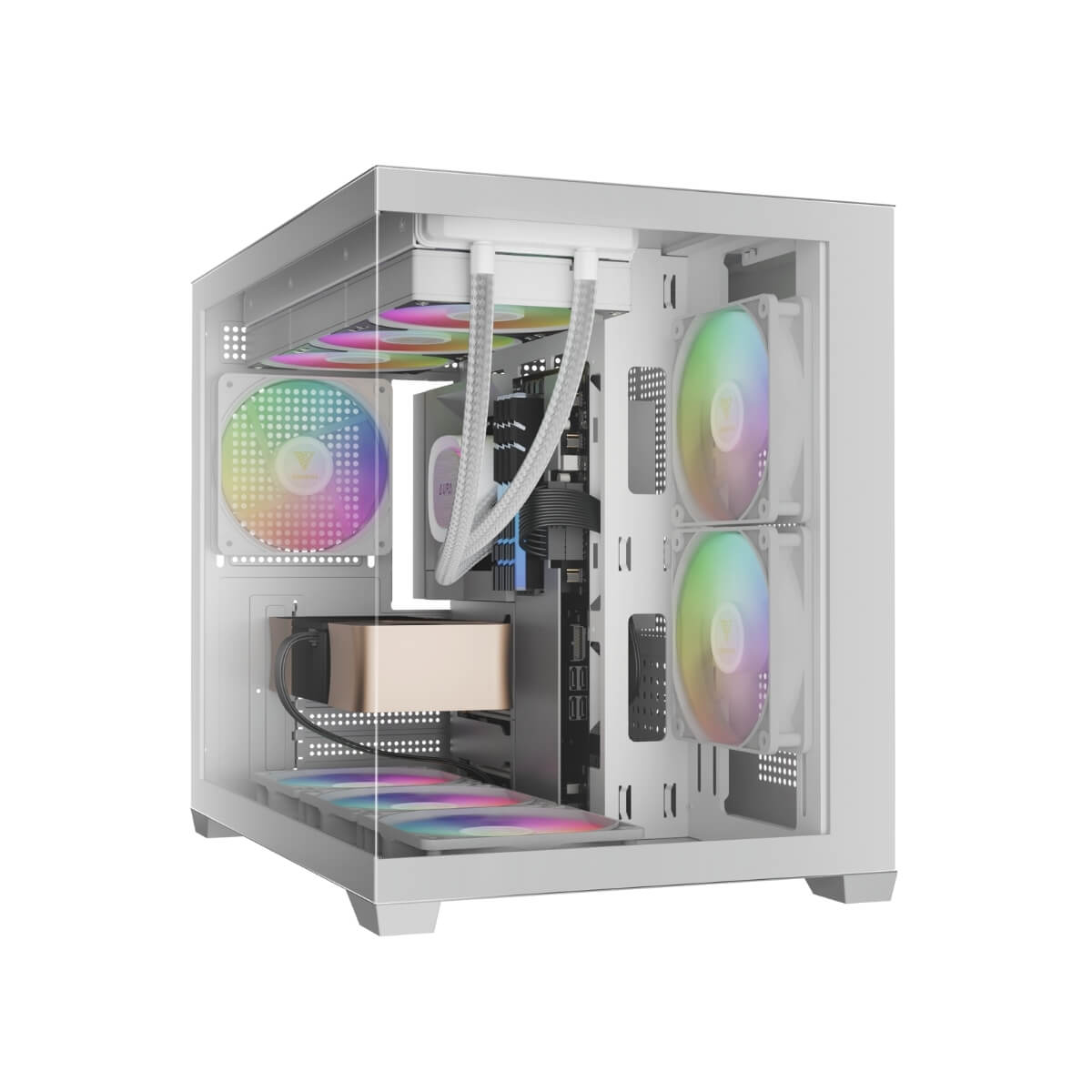 Dù sở hữu kích thước gọn gàng, AURA GC10M V2 WH vẫn mang đến khả năng hỗ trợ VGA có chiều dài lên đến 400mm – lý tưởng cho các dòng card đồ họa cao cấp. Tản nhiệt khí hỗ trợ chiều cao tối đa 165mm, đồng thời tương thích với radiator tản nước kích thước lớn tới 360mm, đảm bảo hiệu suất làm mát luôn ở mức tối ưu cho các cấu hình chuyên game hay làm việc cường độ cao.