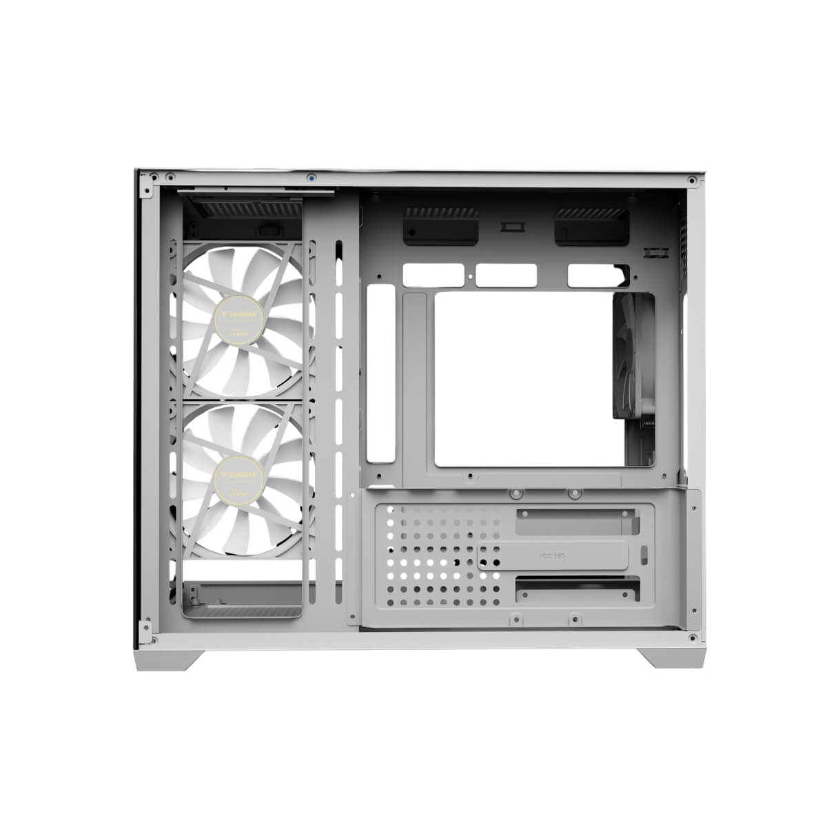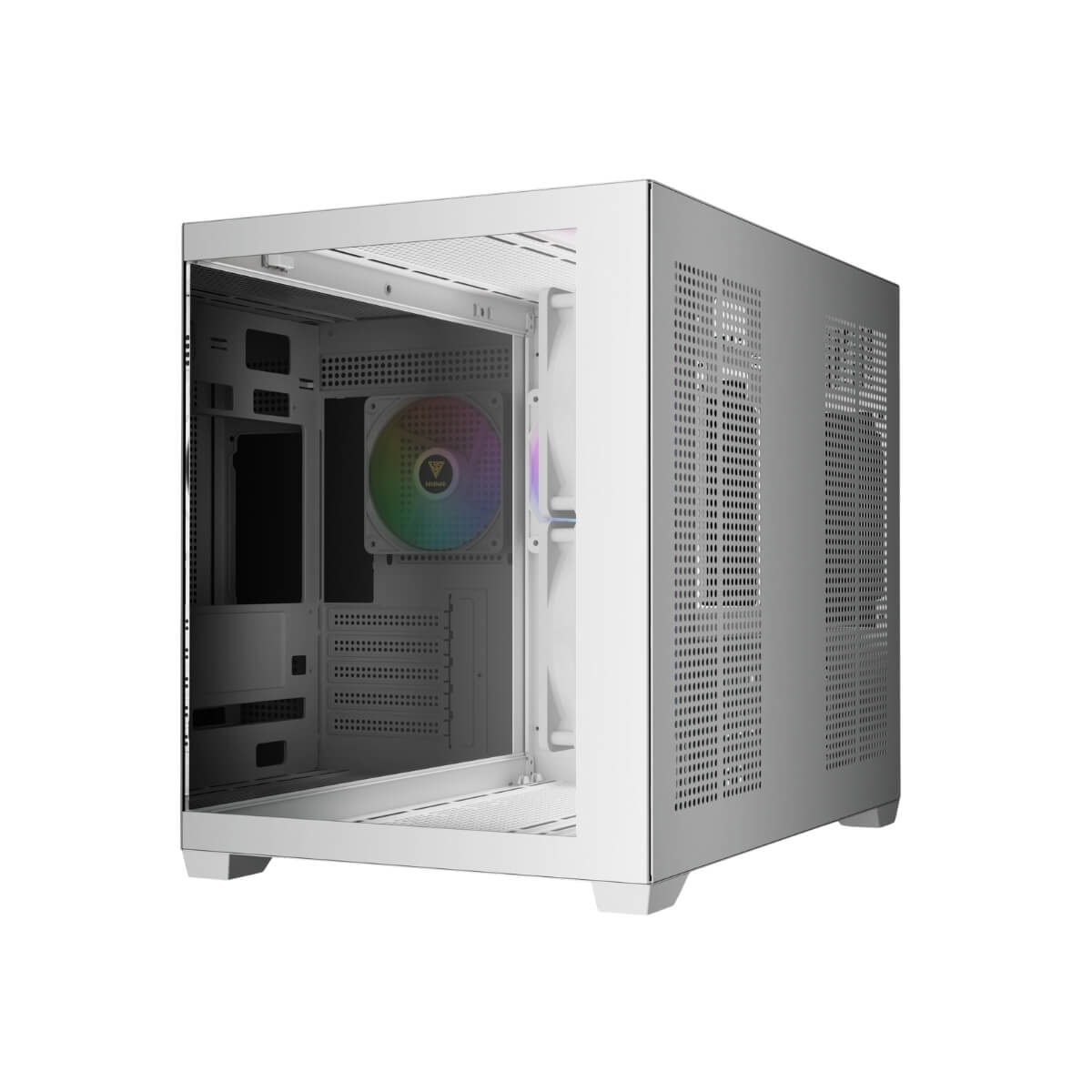 GC10M V2 WH hỗ trợ hai chuẩn mainboard Micro-ATX và Mini-ITX, đặc biệt cho phép gắn mainboard theo chiều ngược độc đáo, mở ra nhiều khả năng sáng tạo trong bố cục linh kiện. Case có 5 khe mở rộng cùng hệ thống lưu trữ linh hoạt gồm 1 x 3.5″ hoặc 1 x 2.5″ (HDD Cage) và 3 x 2.5″, giúp người dùng dễ dàng tùy biến theo nhu cầu sử dụng thực tế.