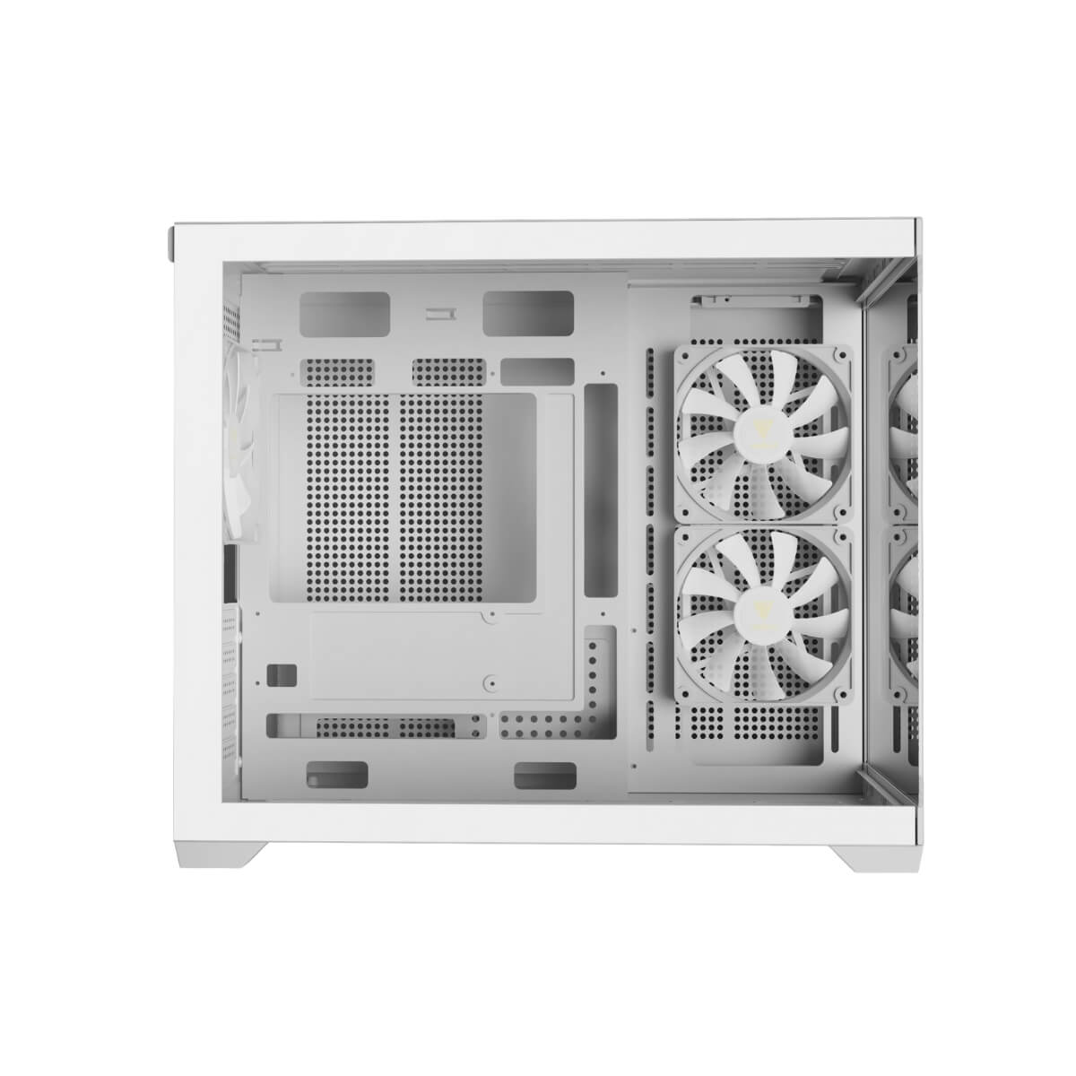 Với tổng cộng 9 vị trí lắp quạt 120mm hoặc 7 vị trí quạt 140mm, GC10M V2 WH mang lại khả năng tùy biến tản nhiệt cực kỳ ấn tượng. Người dùng có thể lắp quạt ở nóc (3 x 120mm hoặc 2 x 140mm), hông (2 x 120mm hoặc 2 x 140mm), đáy (3 x 120mm hoặc 2 x 140mm) và mặt sau (1 x 120mm hoặc 1 x 140mm). Điều này không chỉ giúp cải thiện luồng gió tối đa mà còn đảm bảo nhiệt độ luôn được kiểm soát chặt chẽ dù hệ thống hoạt động liên tục trong thời gian dài.