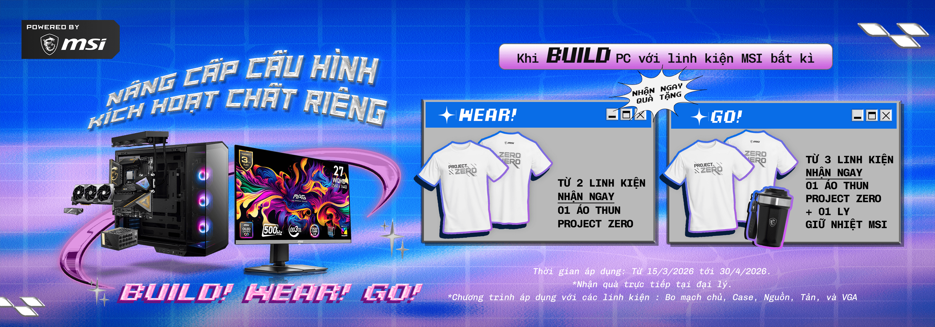 🎁 COMBO WEAR: Khi mua từ 2 sản phẩm linh kiện MSI, nhận ngay quà tặng gồm 01 Áo thun MSI PROJECT ZERO.