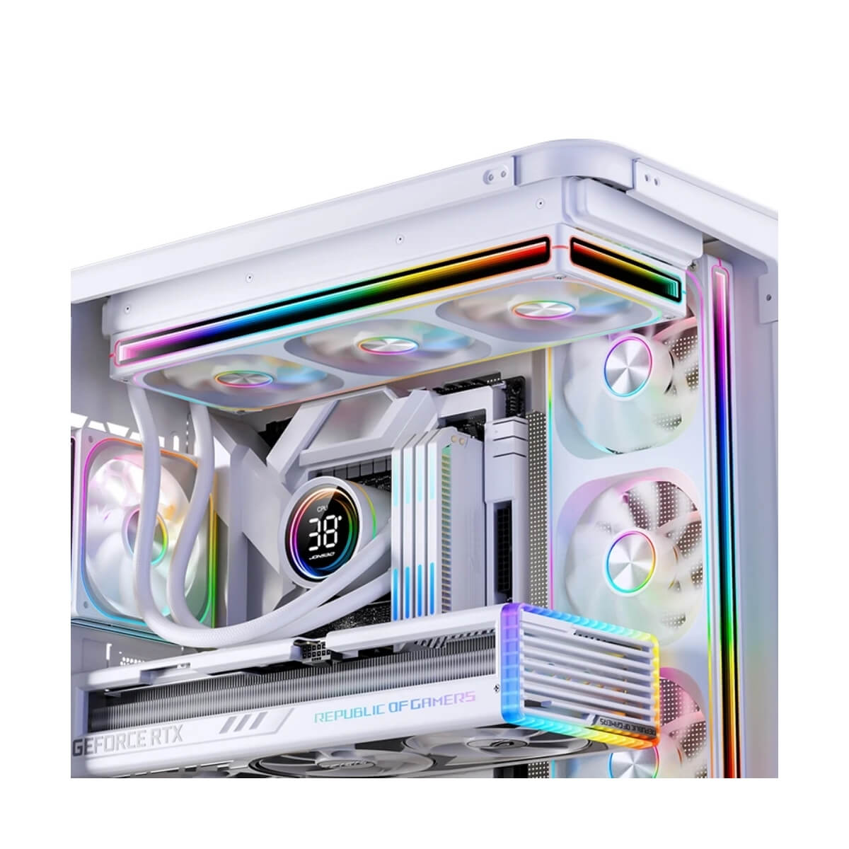 Jonsbo ZA-120WR White (Gió Ngược) được trang bị hệ thống LED ARGB (Addressable RGB) kết hợp đầu nối 3PIN, dễ dàng đồng bộ ánh sáng với các bo mạch chủ phổ biến như ASUS Aura Sync, MSI Mystic Light và Gigabyte RGB Fusion. Hiệu ứng Infinity Mirror nổi bật ở mặt trước mang lại chiều sâu ánh sáng, góp phần tăng tính thẩm mỹ và tạo điểm nhấn độc đáo cho dàn PC.