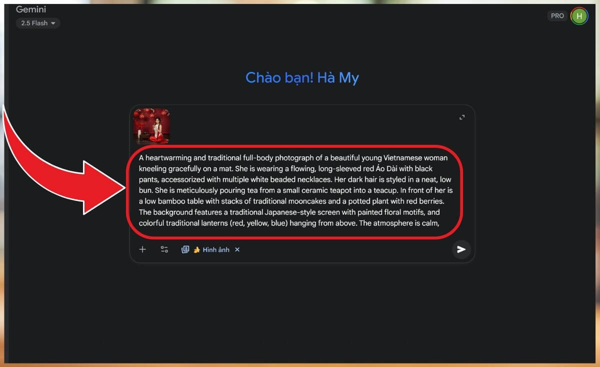 Ngay sau khi tải ảnh, bạn hãy nhập vào khung chat một đoạn mô tả chi tiết (prompt) về hình ảnh Trung thu mà bạn mong muốn.