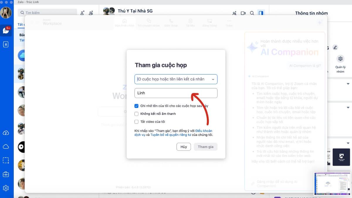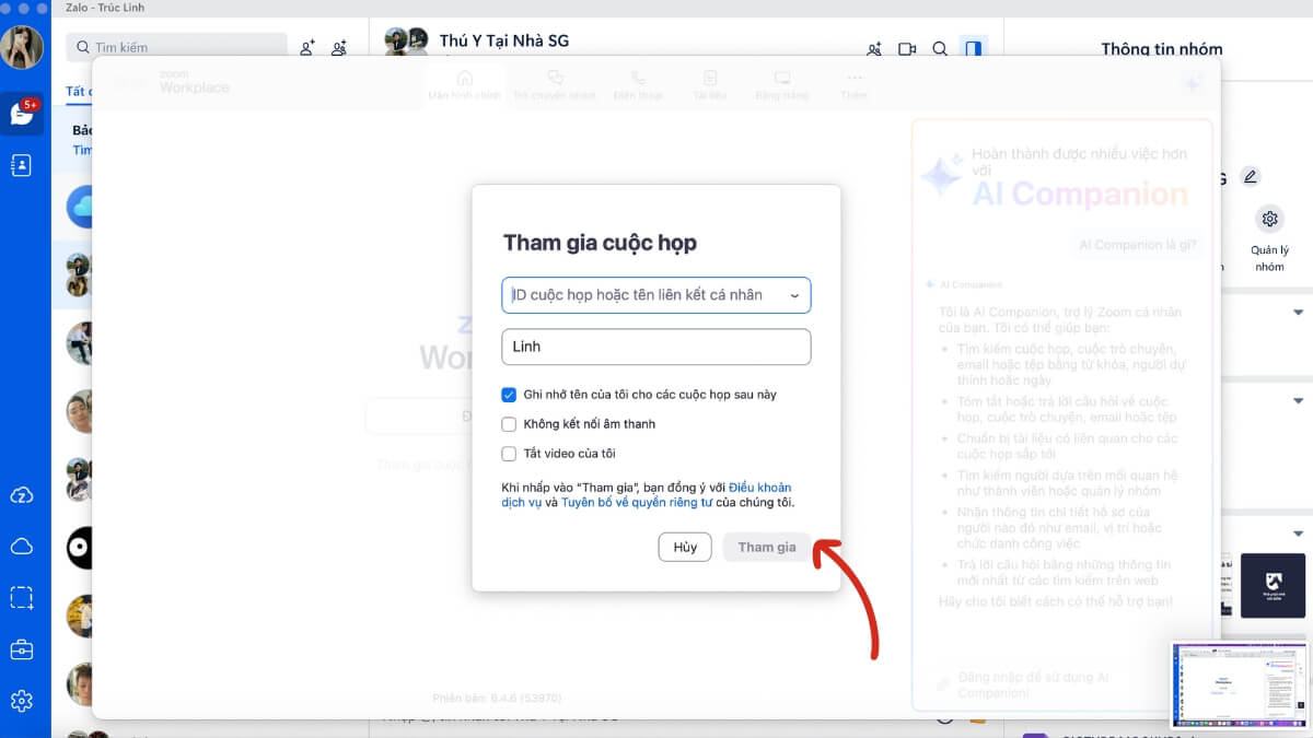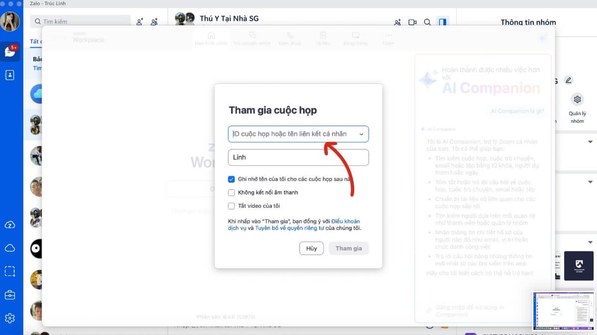 Bước 2: Nhấn “Join” và nhập Meeting ID