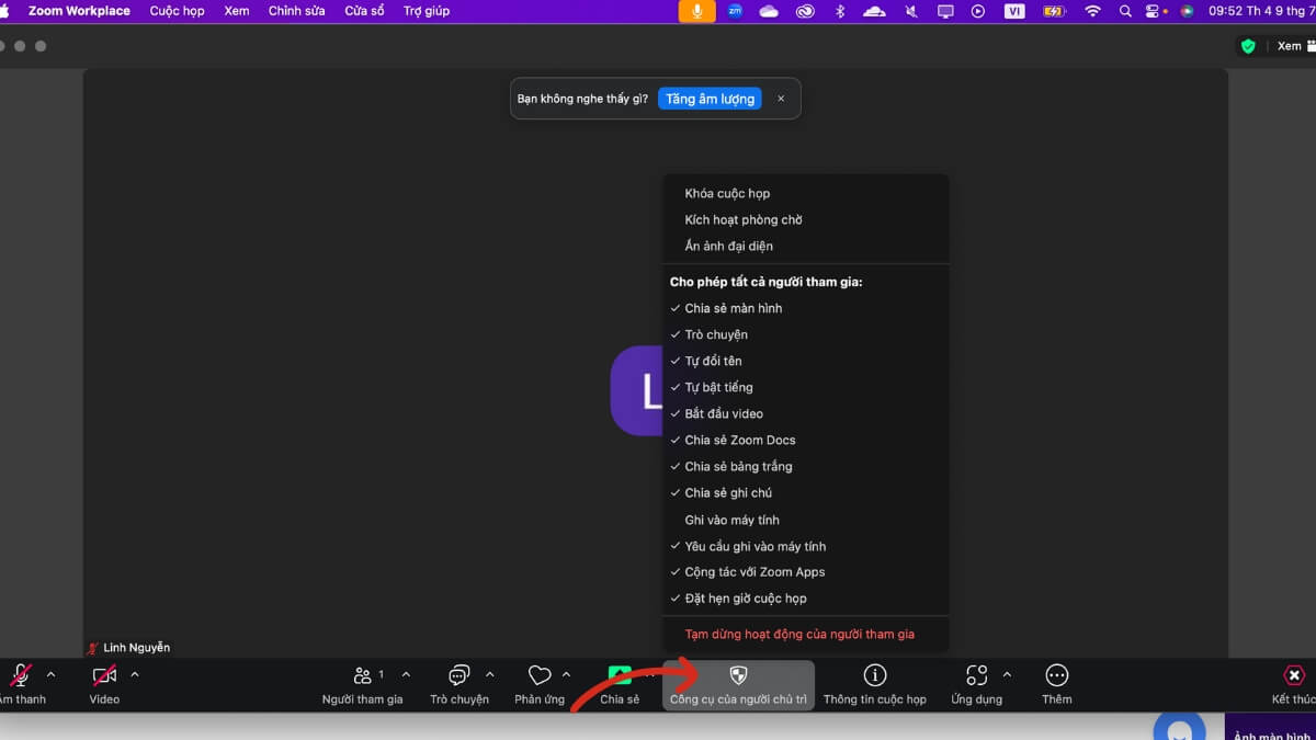 Bước 3: Nếu được mời làm Host/Co-host, bạn sẽ thấy các công cụ điều khiển