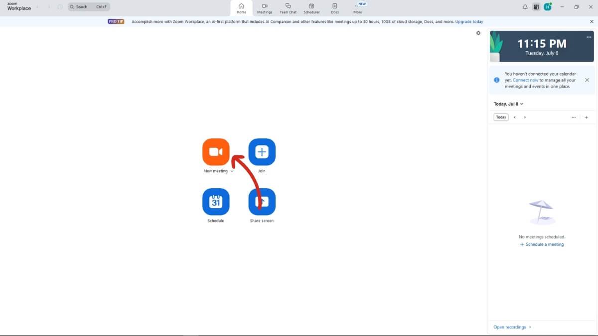 Bước 2: Nhấn “New Meeting” để bắt đầu một cuộc họp mới