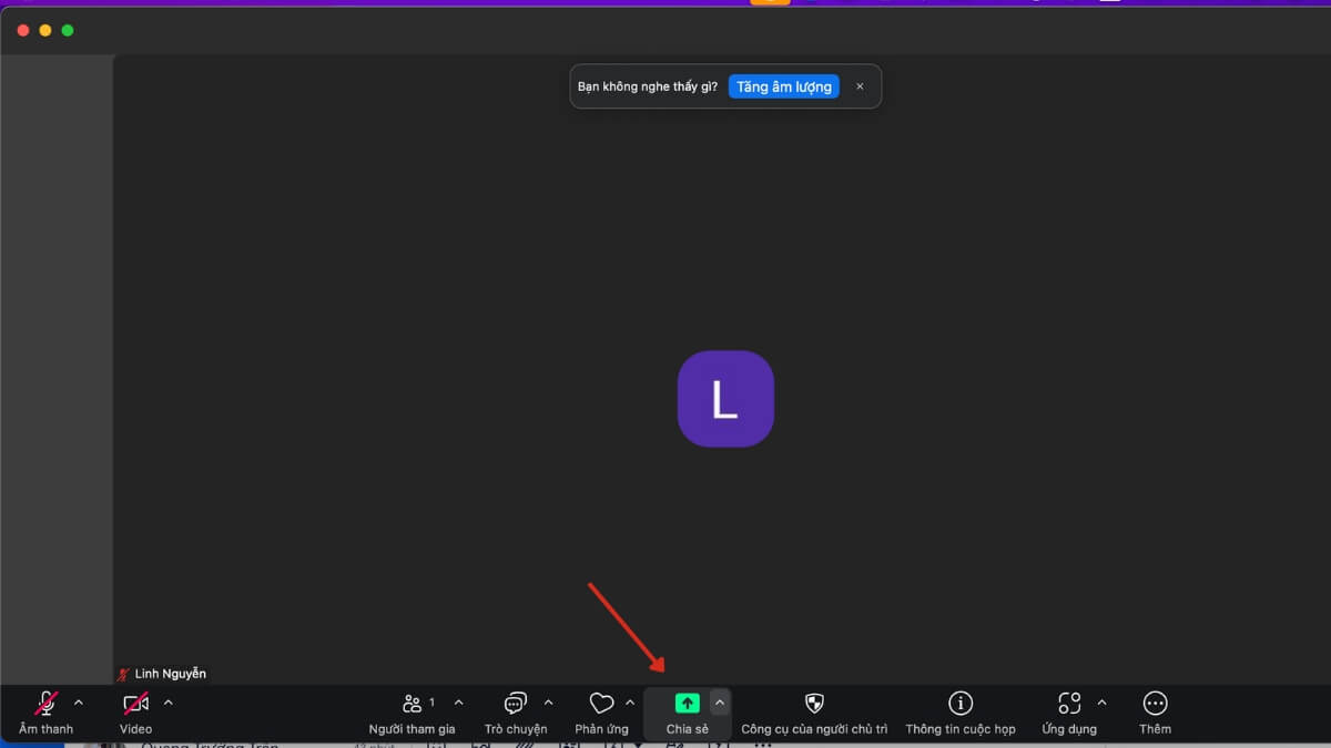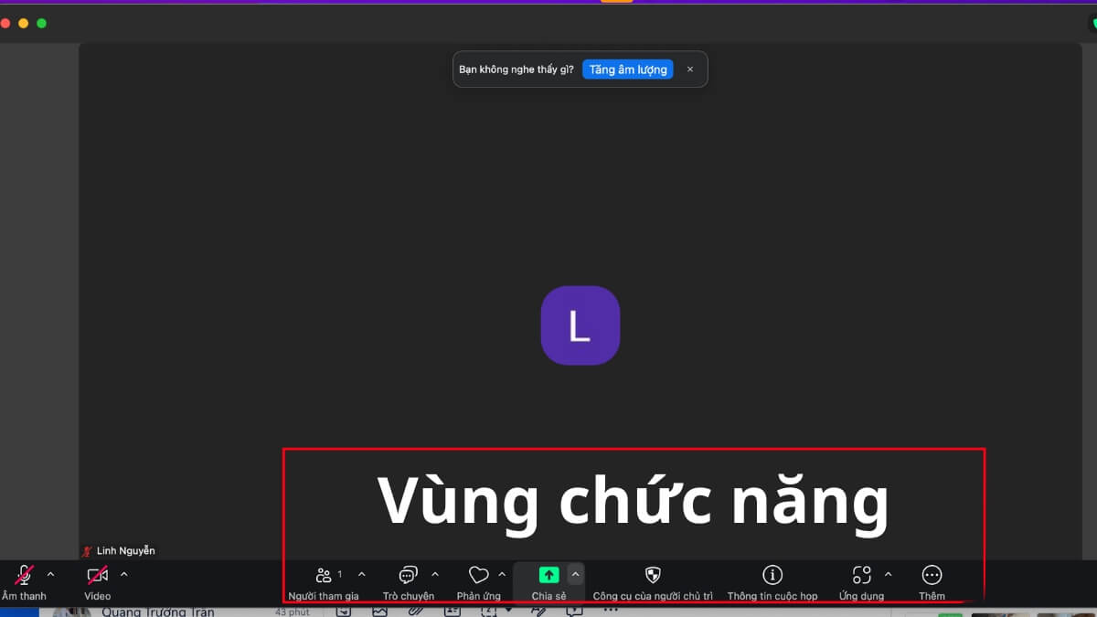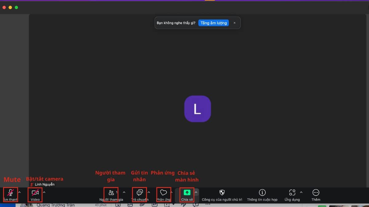Bước 4: Tùy theo quyền hạn, bạn có thể trò chuyện, chia sẻ màn hình, bật/tắt camera
