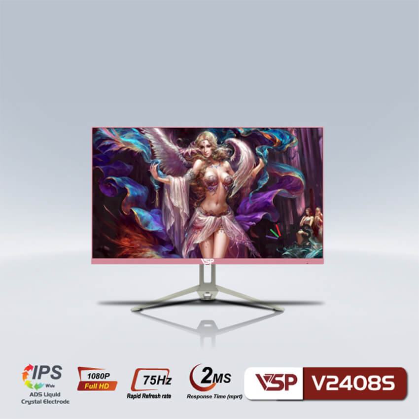 Màn hình PC Phẳng VSP V2408S Tràn Viền (24inch, IPS, FHD, 75Hz) Pink /Hồng