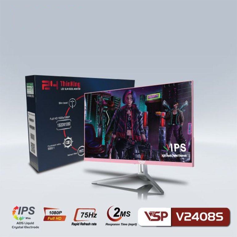 Màn hình VSP ThinKing được trang bị tấm nền VA (Vertical Alignment) với kích thước 23.8 inch và tần số quét 75Hz, cho độ phân giải Full HD 1920x1080p. Sản phẩm này rất lý tưởng cho các công việc thiết kế nội thất, lập trình, thiết kế web cũng như cho việc xem ứng dụng, bảng tính và chơi game.
