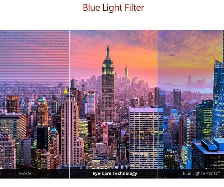 Công nghệ Flicker-Free và bộ lọc ánh sáng xanh giúp ngăn ngừa mỏi mắt khi xem lâu.
