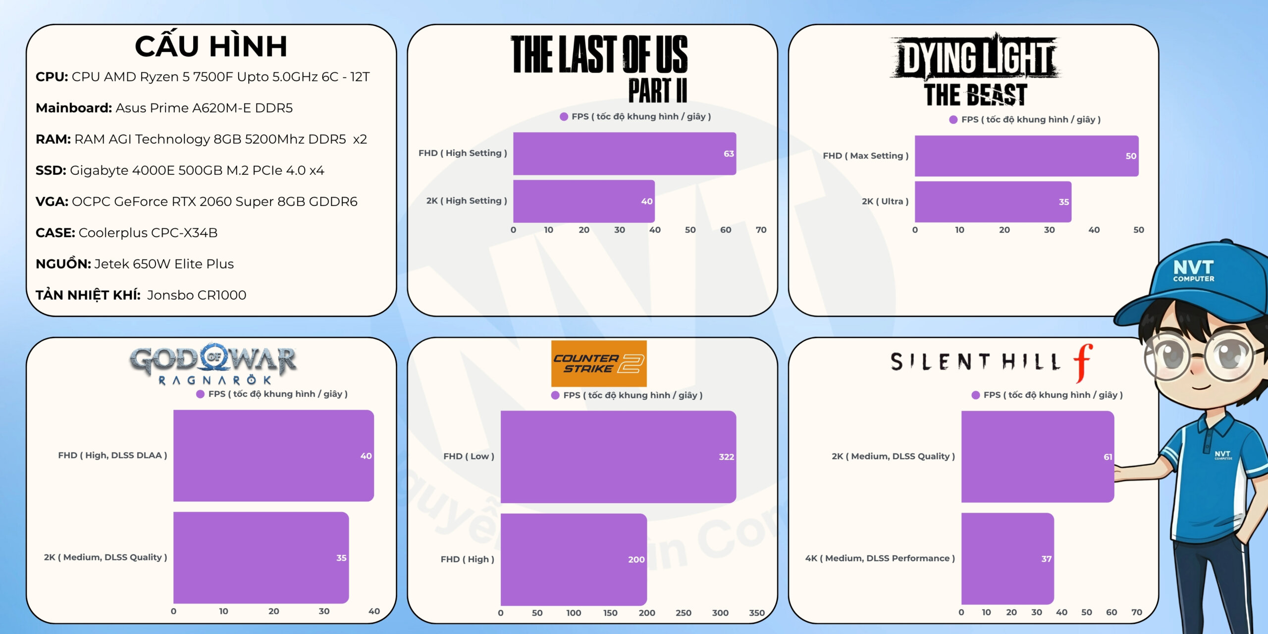 Lưu ý: Thông số FPS trên được đo trong điều kiện và cấu hình cụ thể, chỉ mang tính chất tham khảo. Hiệu năng thực tế có thể thay đổi tùy thuộc vào phiên bản game, driver, nhiệt độ và các yếu tố phần cứng/phần mềm khác.