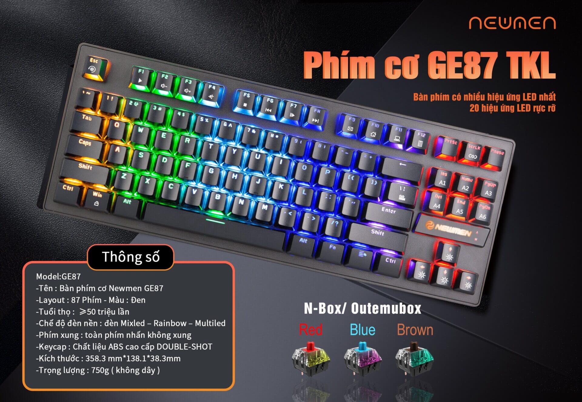 Newmen chú trọng đến cảm giác gõ phím với sự tỉ mỉ, điều này được thể hiện rõ ngay cả ở bàn phím giá rẻ GE87. Switch được tùy chỉnh để tương thích tốt, mang lại cảm giác gõ phím thoải mái hơn, độ bền cao hơn, và phản hồi nhanh chóng hơn.