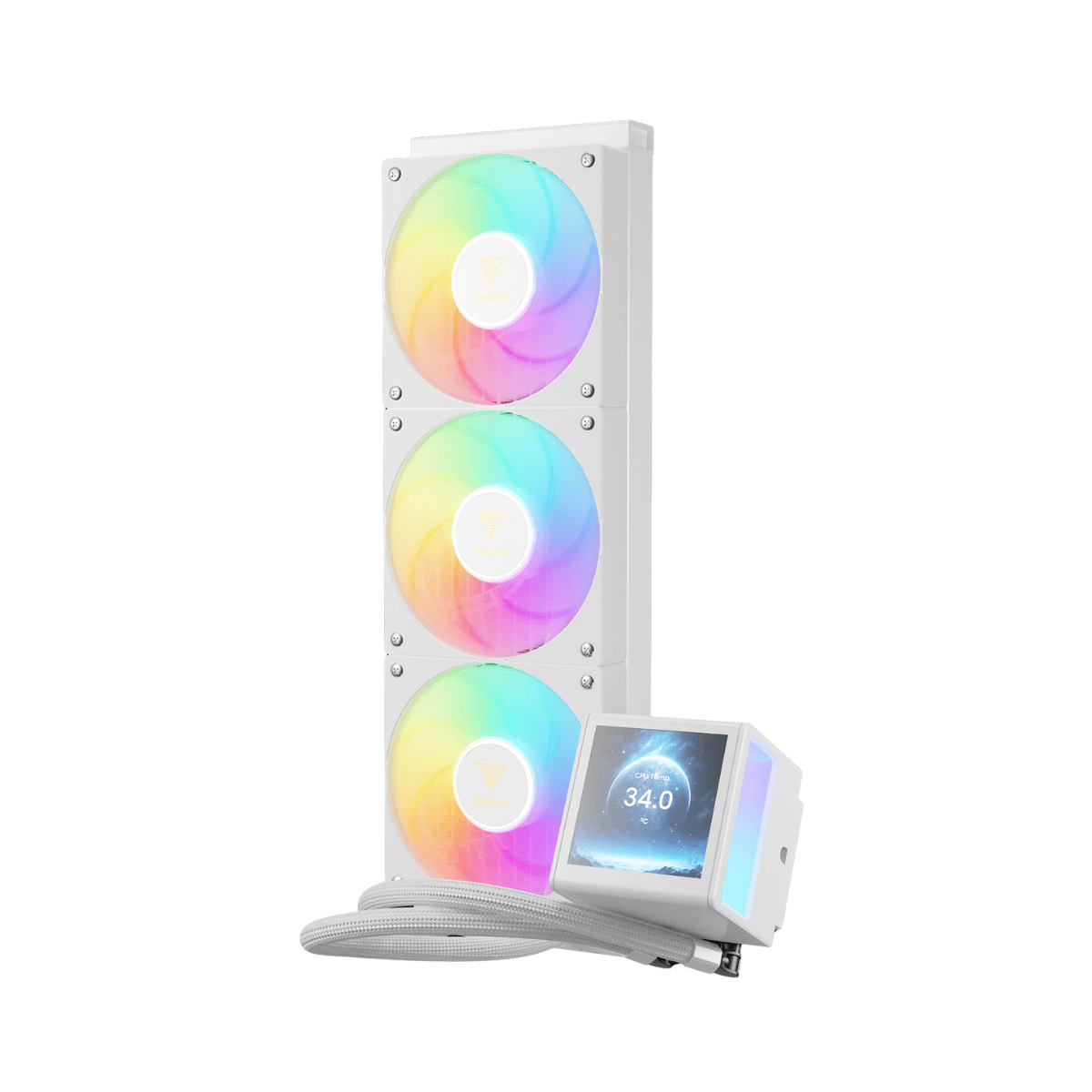 Tản nhiệt nước AIO Gamdias CHIONE P5-360 WH ARGB White là giải pháp làm mát cao cấp dành cho các cấu hình PC hiệu năng cao, nổi bật với tông màu trắng tinh tế, phù hợp cho những bộ máy theo phong cách hiện đại và đồng bộ màu sắc. Sản phẩm hiện được Nguyễn Thuận Computer phân phối, đảm bảo chất lượng chính hãng và khả năng vận hành ổn định lâu dài.