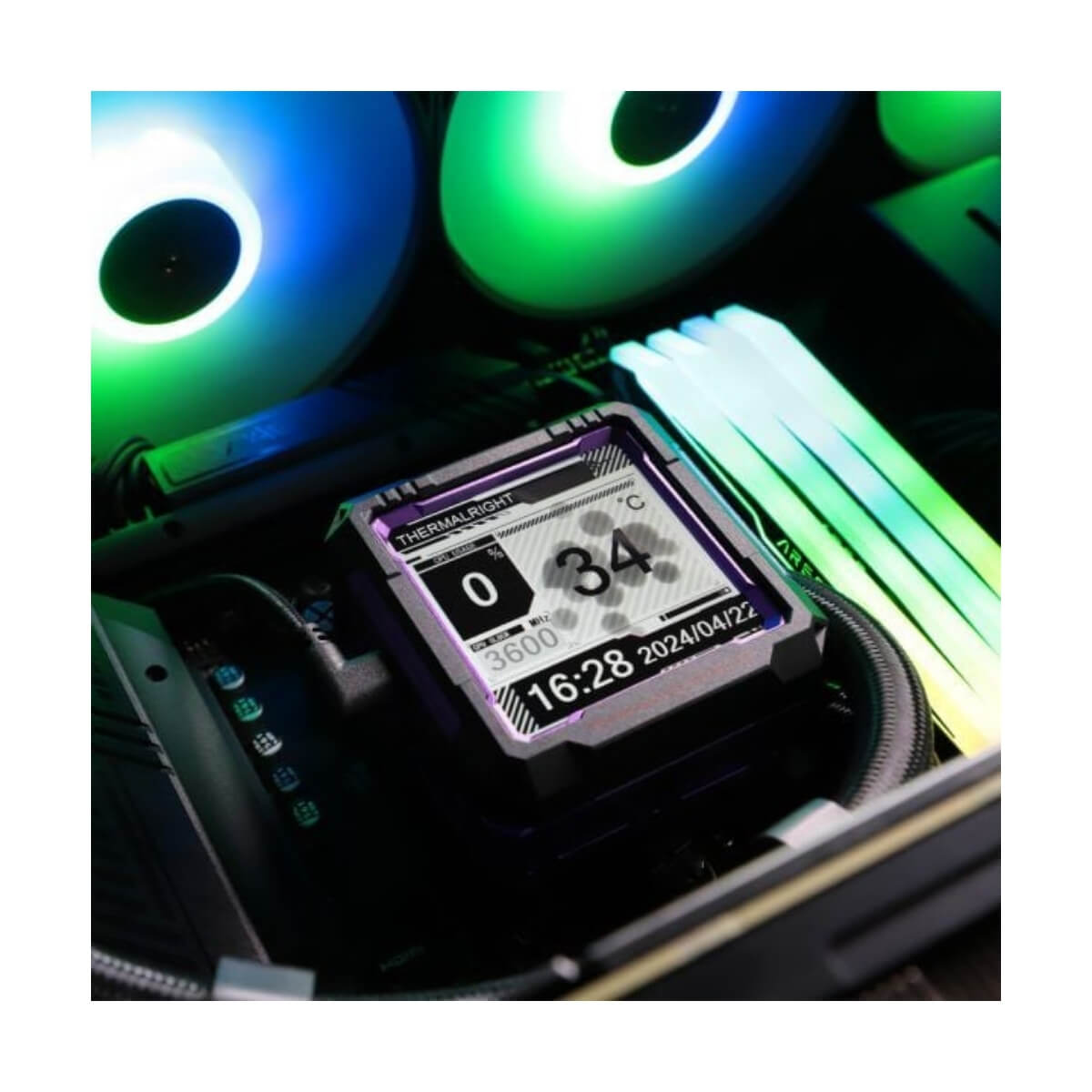 Một điểm nhấn đặc biệt của Frozen Warframe Pro 360 là màn hình LCD IPS 2.73 inch độ phân giải cao. Màn hình có thể hiển thị nhiệt độ CPU, tốc độ quạt, hoặc các hình ảnh tùy chỉnh như logo, ảnh GIF cá nhân. Thiết kế xoay được và tháo rời giúp người dùng dễ dàng bố trí theo ý muốn, tăng thêm tính thẩm mỹ và tiện ích cho hệ thống.