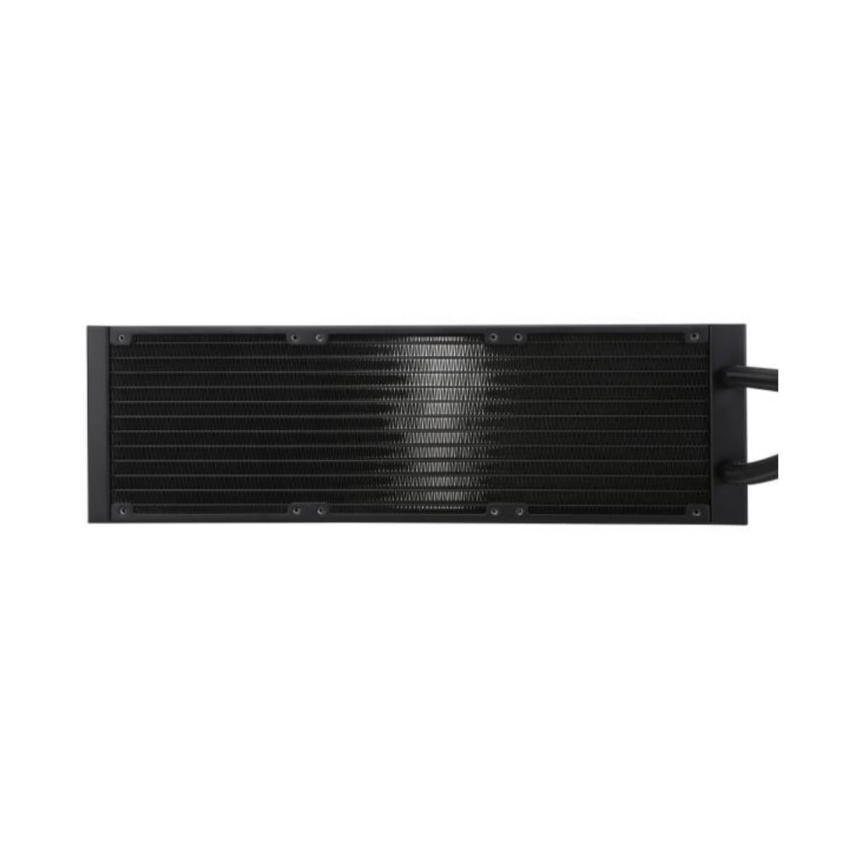 Toàn bộ hệ thống tản nhiệt được phủ tông đen sang trọng, kết hợp đèn ARGB đồng bộ với bo mạch chủ, tạo nên tổng thể mạnh mẽ và hiện đại. Radiator làm từ nhôm cao cấp, kích thước 397mm x 120mm x 27mm, giúp truyền dẫn nhiệt hiệu quả mà vẫn đảm bảo độ bền và nhẹ.